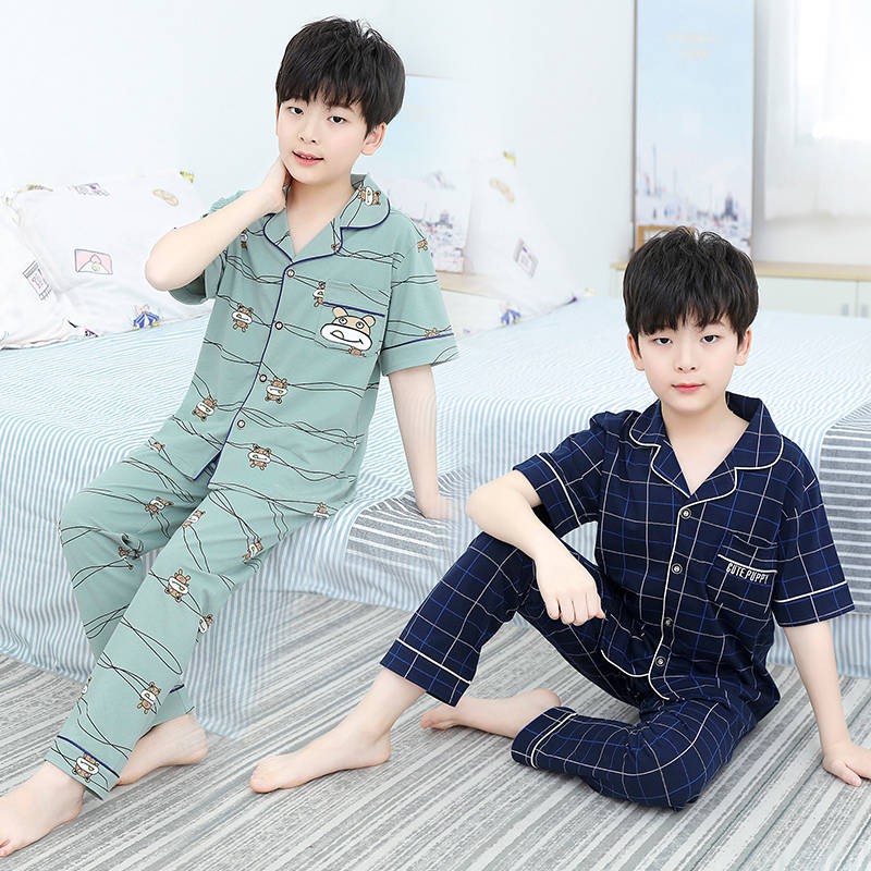 Pyjamas Baju Tidur Piyama Kanak Kanak Lelaki Baju Musim Panas Kapas Piyama Kanak Kanak Lelaki Musim Panas Lengan Pendek Kanak Kanak Separuh Baya Berpenyaman Udara Bahagian Nipis Perkhidmatan Rumah Musim Panas Baju Lelakibaju Tidur Perempuan