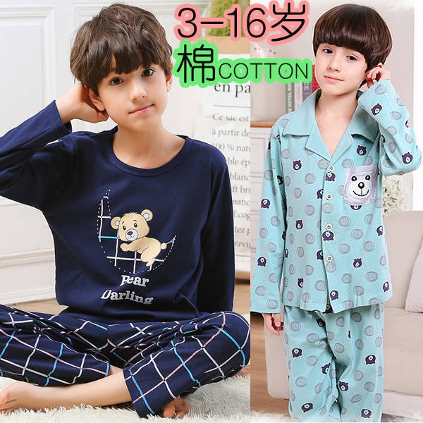 Baju Tidur Budak Anak Anak Piyama Kanak Kanak Lelaki Kapas Besar Lengan Panjang Musim Semi Dan Musim Luruh Lelaki Di Lelaki Besar Lelaki 10 Tahun Musim Luruh 13 Bahagian Nipis Baju Musim Luruh